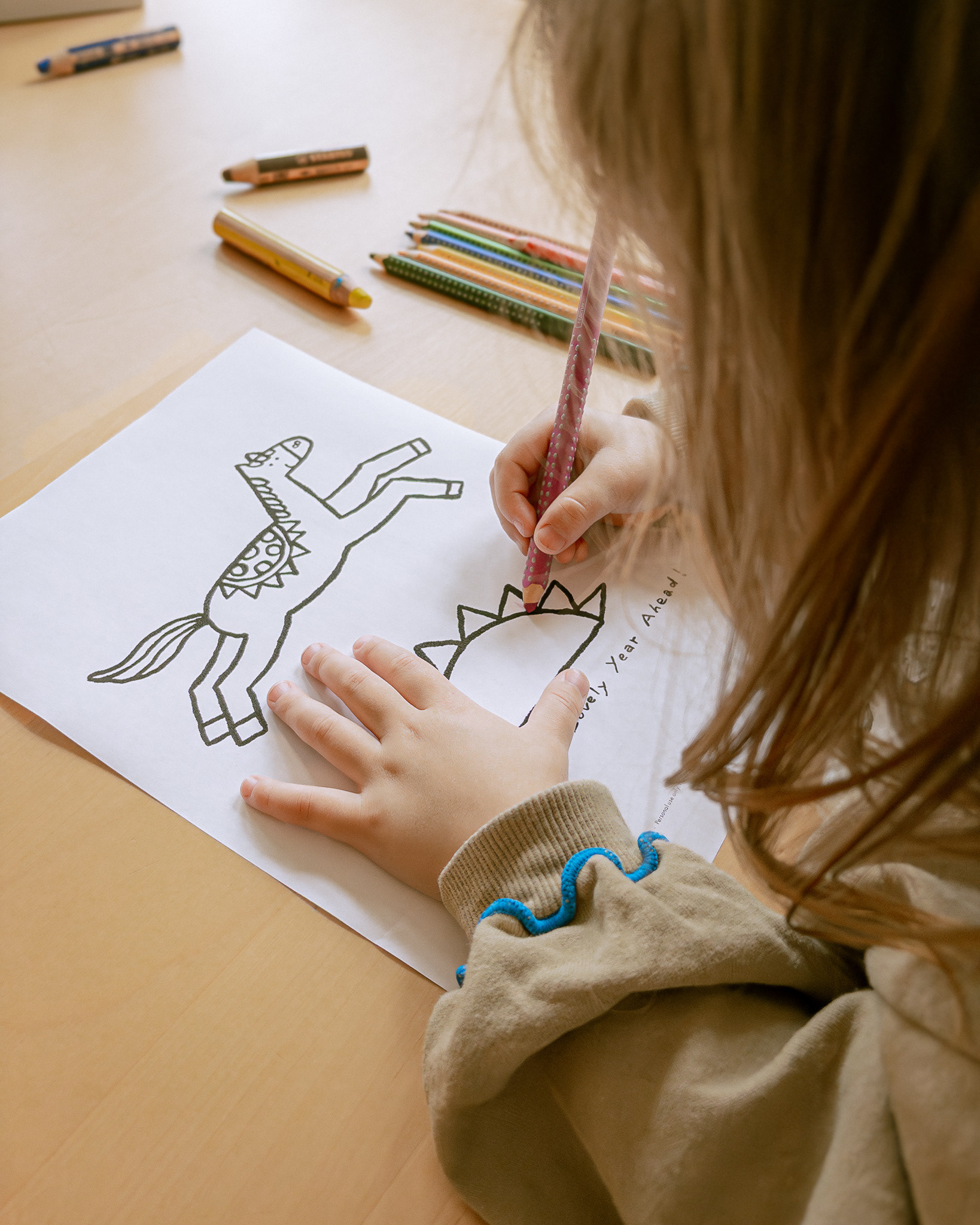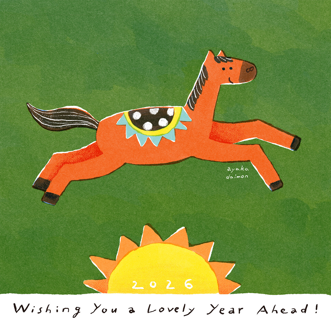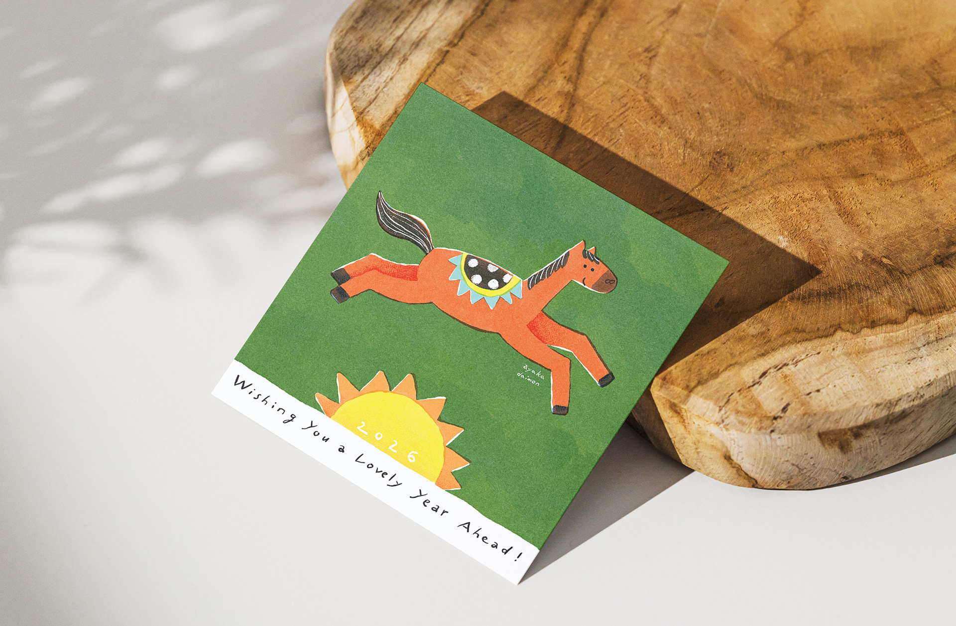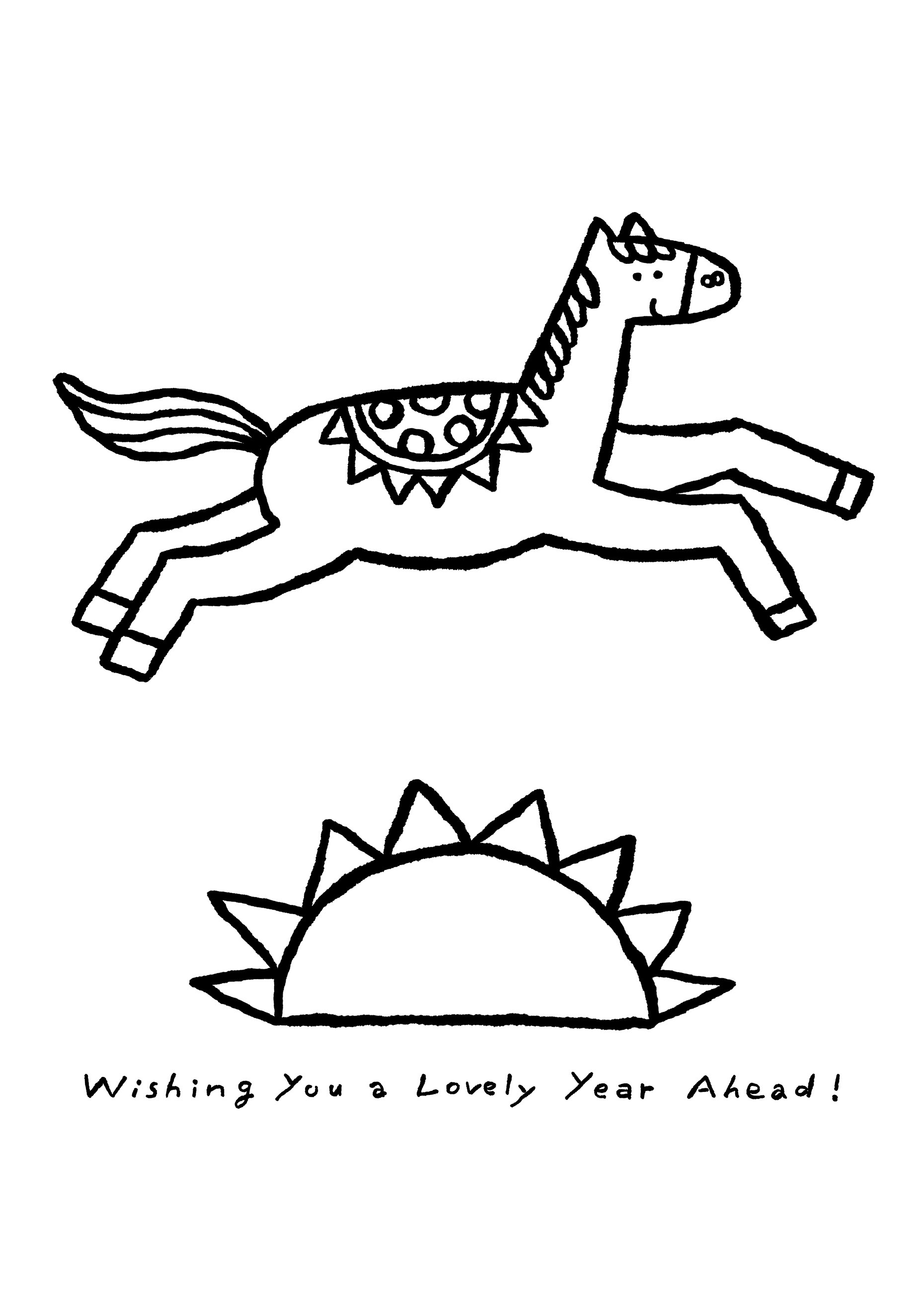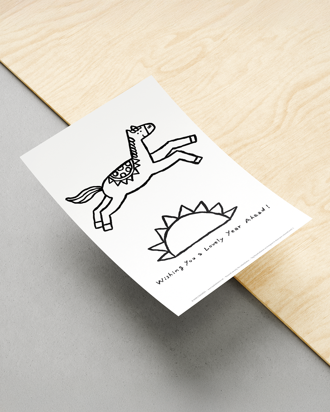 This is a personal illustration project created as part of my New Year’s greeting. Designed for use as a 2026 (Year of the Horse) New Year card, the artwork also includes a line-art version so that young children can enjoy it as a coloring activity.